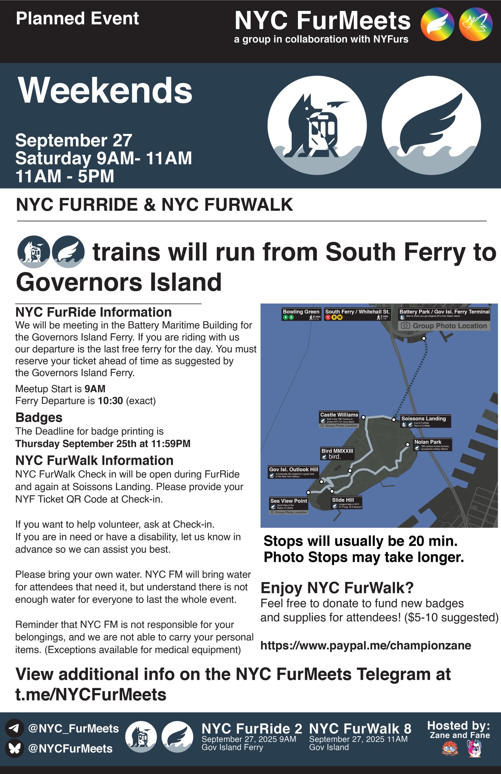 (Information in this description is subject to change, so be sure to regularly check in on this website page and the NYC FurWalk Telegram chat for the most up-to-date info)